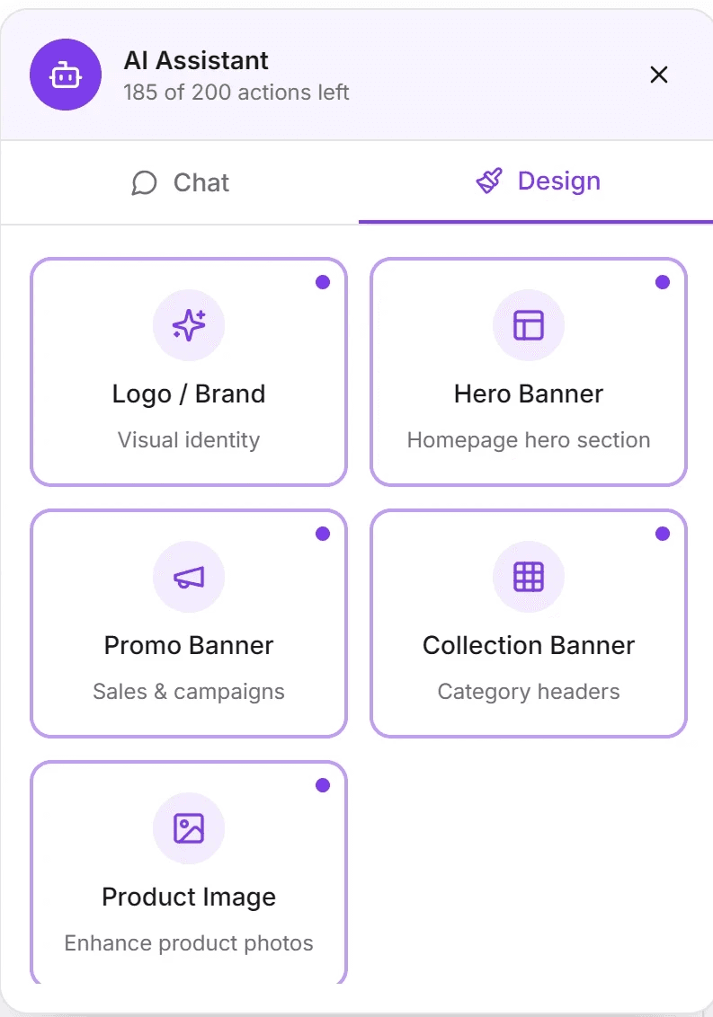 Create stunning logos, banners, and store visuals in seconds using the built-in AI Design Studio.
